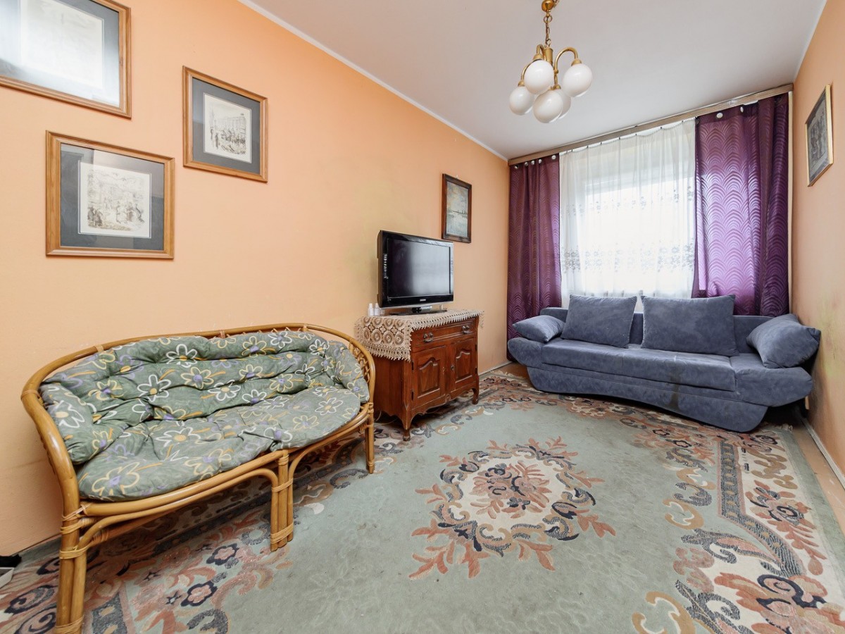 Mieszkanie składa się z salonu z wyjściem na balkon, dwóch oddzielnych sypialni, osobnej kuchni z oknem, łazienki oraz oddzielnego WC.