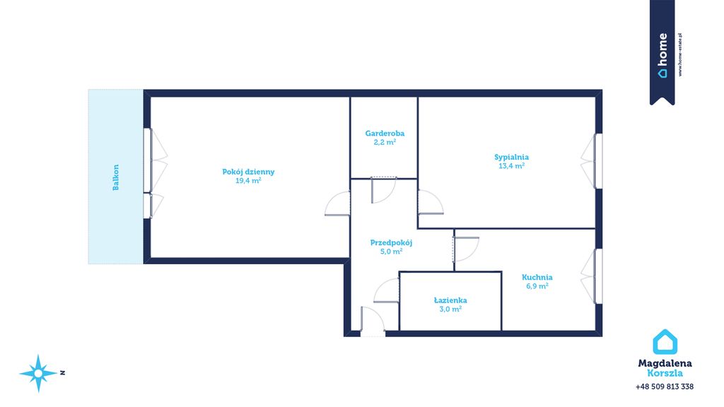 - Z salonu wyjście na przestronny balkon od strony południowej, idealny do relaksu w słoneczne dni.