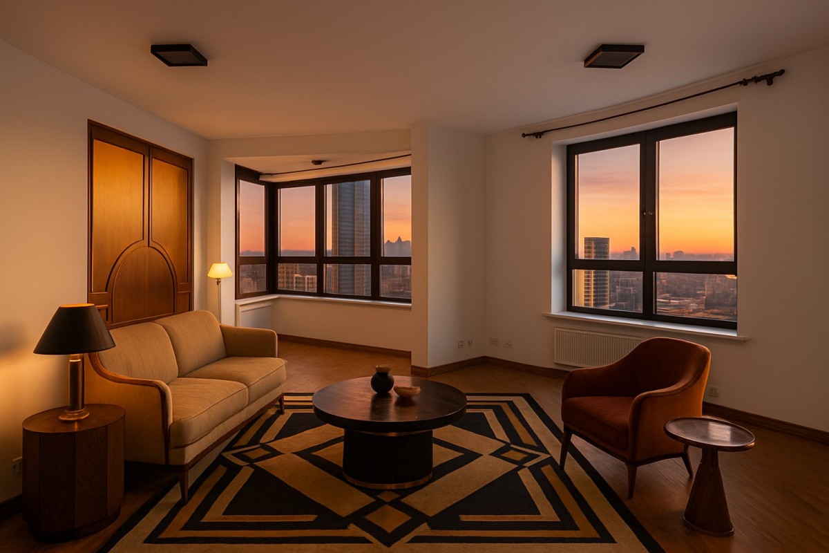 Ten wyjątkowy apartament to połączenie komfortu, funkcjonalności i imponujących widoków. Przestronny salon z dużymi oknami wprowadza mnóstwo naturalnego światła, a rozciągający się z niego widok na panoramę Warszawy zachwyca szczególnie o zachodzie słońca. Zamykana kuchnia z oknem zapewnia wygodę użytkowania, a trzy niezależne pokoje oferują różnorodne możliwości aranżacyjne - sypialnię, gabinet lub pokój gościnny. Dodatkowo do dyspozycji mamy dwie łazienki, a klimatyzacja w salonie gwarantuje komfort nawet w najcieplejsze dni.