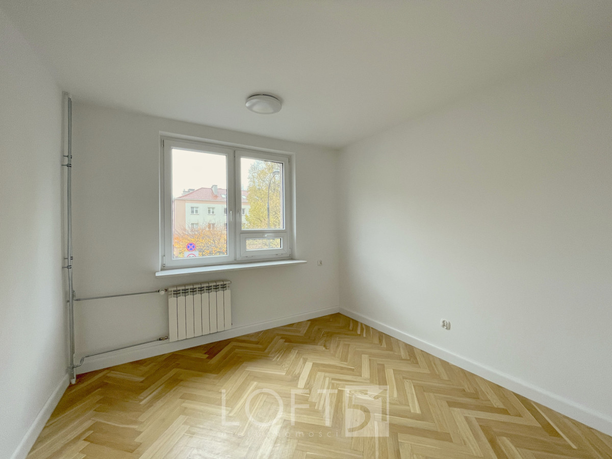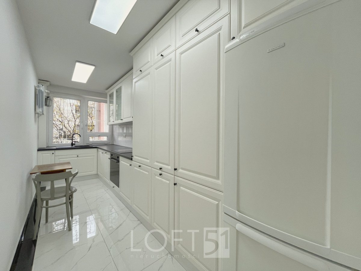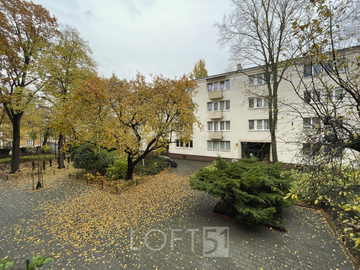 Mieszkanie o powierzchni 58 m² znajduje się na pierwszym piętrze kameralnego, trzypiętrowego budynku z 1963 roku. Przestrzeń została zaprojektowana z myślą o wygodzie i funkcjonalności: