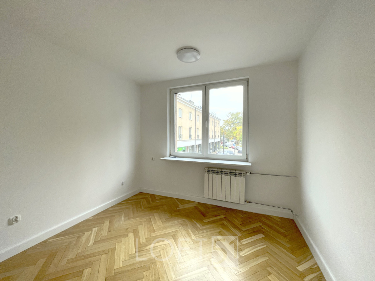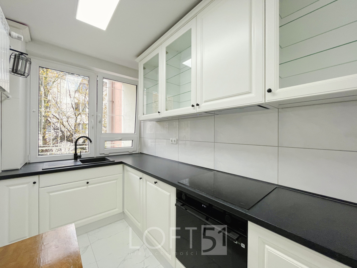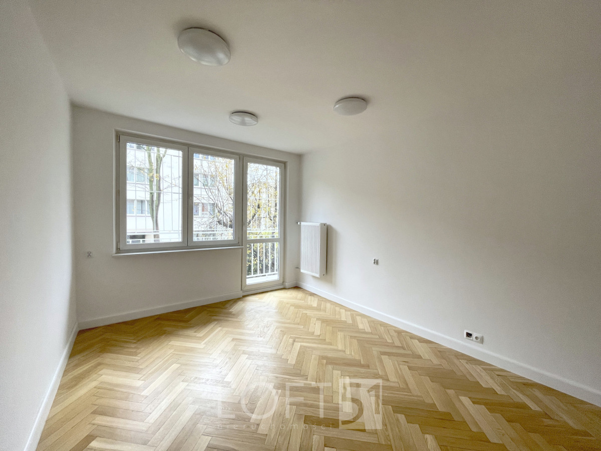 Mieszkanie o powierzchni 58 m² znajduje się na pierwszym piętrze kameralnego, trzypiętrowego budynku z 1963 roku. Przestrzeń została zaprojektowana z myślą o wygodzie i funkcjonalności: