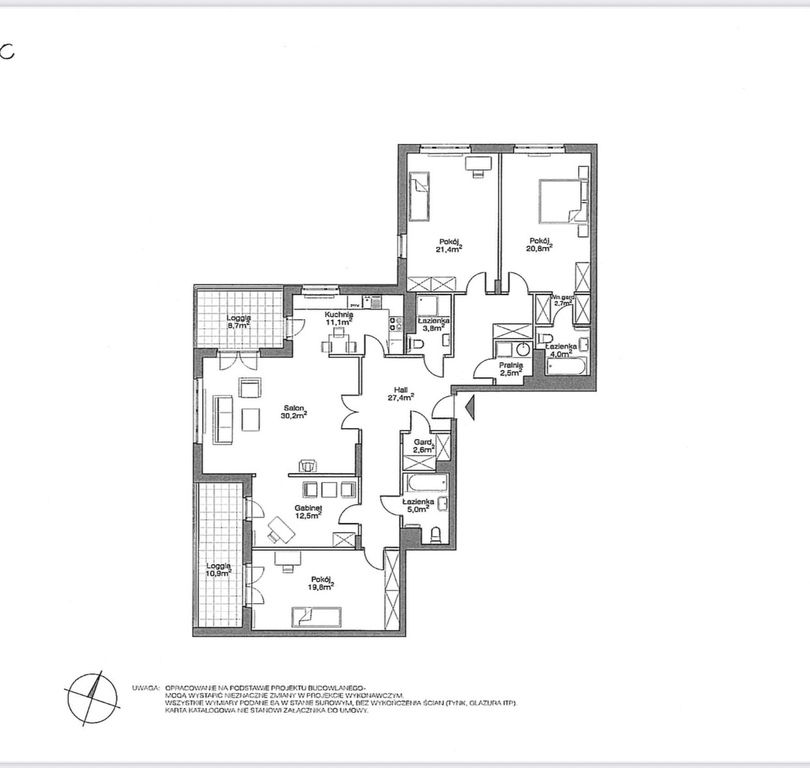 - trzy sypialnie, w tym jedna z dostępem do loggii,