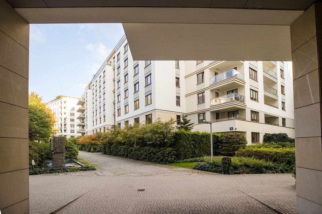 Patria to jeden z najbardziej pożądanych adresów na warszawskim Powiślu. Kompleks składa się z czterech eleganckich budynków i został zaprojektowany w klimatycznym, parkowym charakterze okolicy (ul. Książęca i Kruczkowskiego). Mieszkańcy mogą korzystać z zadbanego, zamkniętego i strzeżonego terenu – zielone patio osiedla z fontanną, leżakami i alejkami jest idealnym miejscem wytchnienia w centrum miasta. Poczucie bezpieczeństwa podnosi całodobowy monitoring, ochrona oraz elegancka recepcja/concierge od strony ul. Kruczkowskiego.