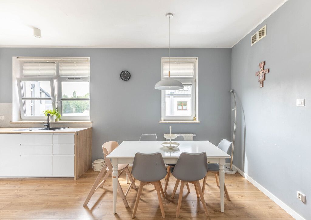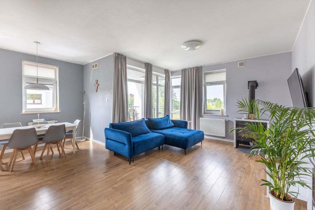 Mieszkanie w bardzo dobrym standardzie do lekkiego odświeżenia. Nieruchomość cicha, jasna oraz funkcjonalna. W mieszkaniu na podłodze występują panele oraz gres, schody dębowe. W salonie i kuchni zastosowano ogrzewanie podłogowe. Dodatkowym atutem jest kominek umilające wieczory zimową porą. Ogrzewanie miejskie. Okna plastikowe. W cenie mieszkania występują meble w zabudowie stałej.