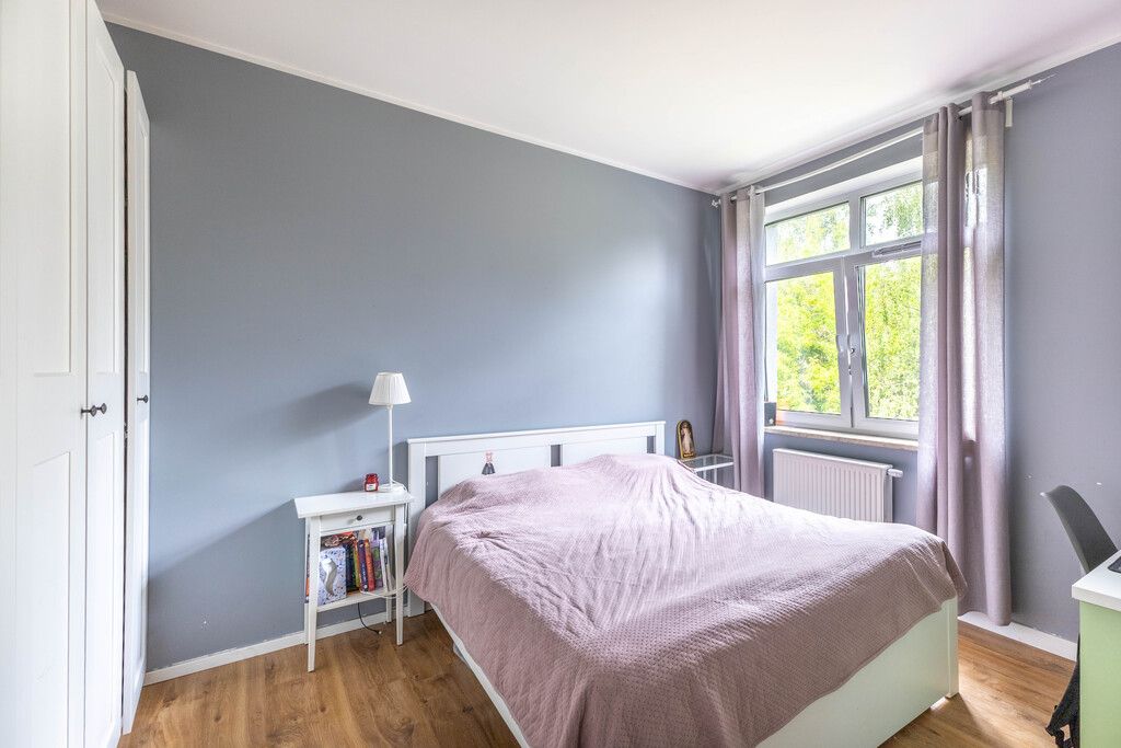 The apartment is in a very good standard, requiring minor renovation. The property is quiet, bright, and functional. The flooring is laminate and stoneware, and the stairs are oak. The living room and kitchen have underfloor heating. A fireplace is an added bonus, perfect for cozy winter evenings. District heating is provided. The windows are PVC. The price includes built-in furniture.