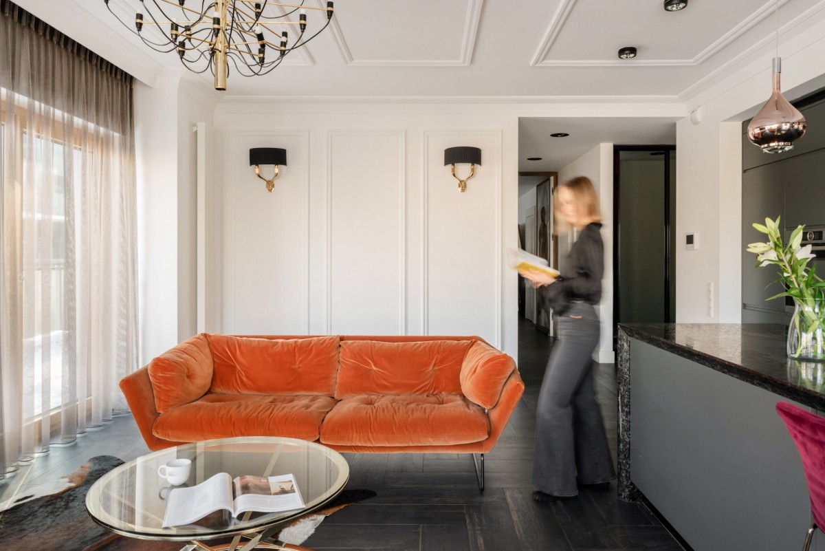 Apartament jest narożny, w pełni umeblowany i wyposażony, zaprojektowany w eleganckim stylu nowoczesny glamour, z dbałością o najwyższy standard wykończenia oraz komfort akustyczny. Duże przeszklenia zapewniają doskonałe doświetlenie wnętrz i potęgują poczucie przestrzeni.