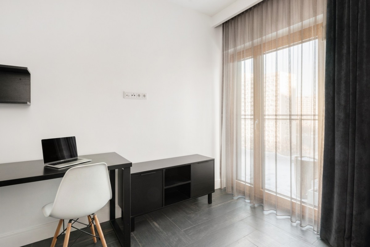 An additional advantage is a large terrace and a second balcony, offering views over Wola and the city skyline-particularly impressive at sunset. Both balconies are equipped with awnings, ensuring comfort on sunny days.