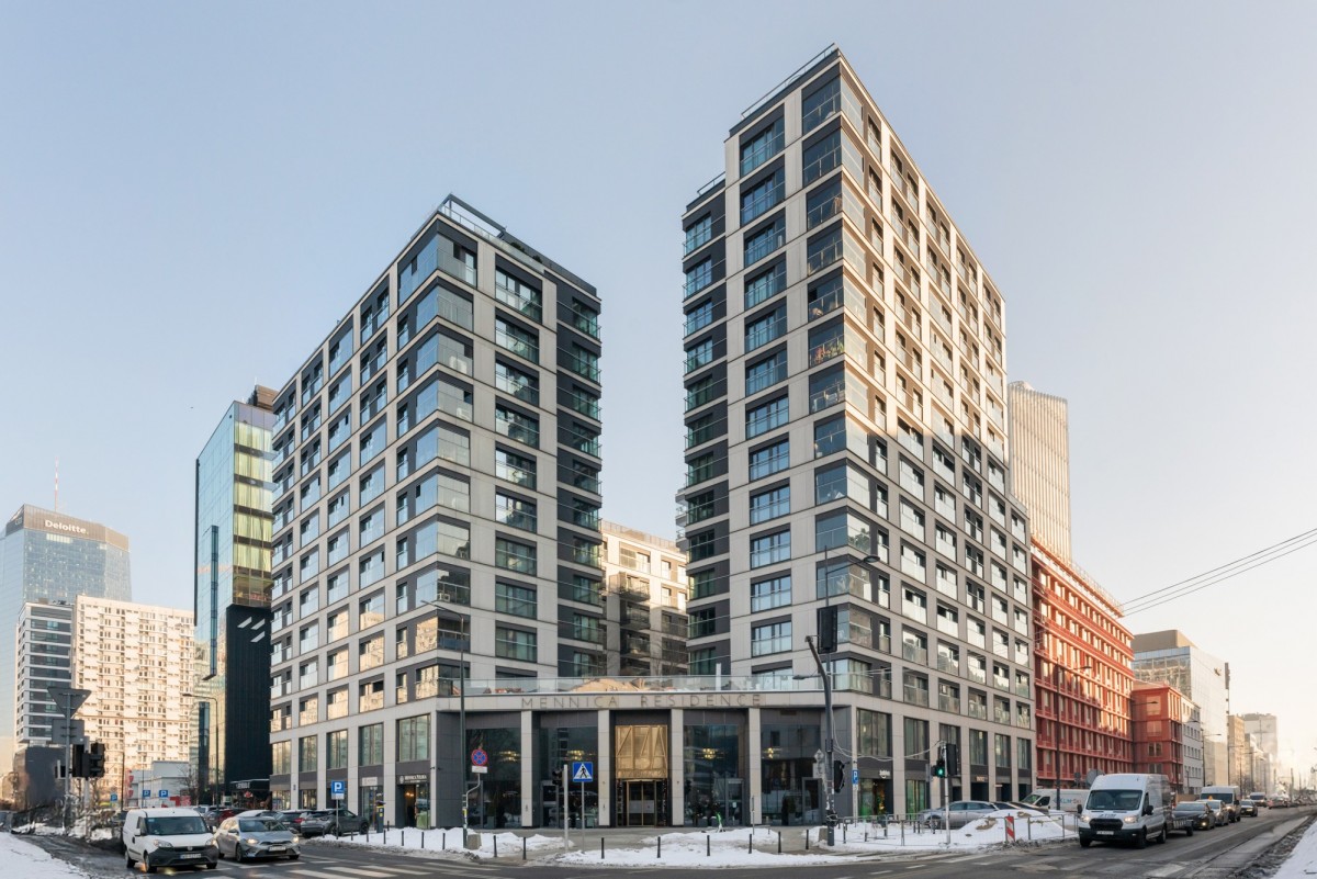 Mennica Residence is a modern, prestigious residential building with elegant architecture, constructed using high-quality materials and featuring large glazing. Residents’ comfort and safety are ensured by a 24-hour reception, monitoring system, and security.