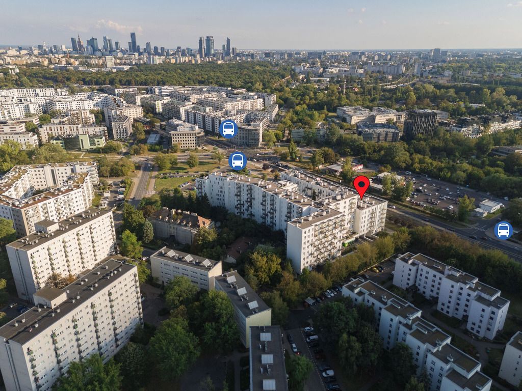 Sady Żoliborskie. Doskonała komunikacja miejska w pobliżu przystanki autobusowe, tramwajowe oraz szybki dojazd do metra. Szybki dojazd do centrum Warszawy, jak i wyjazd do trasy S8. Okolica dobrze rozwinięta, z pełną infrastrukturą handlowo-usługową.