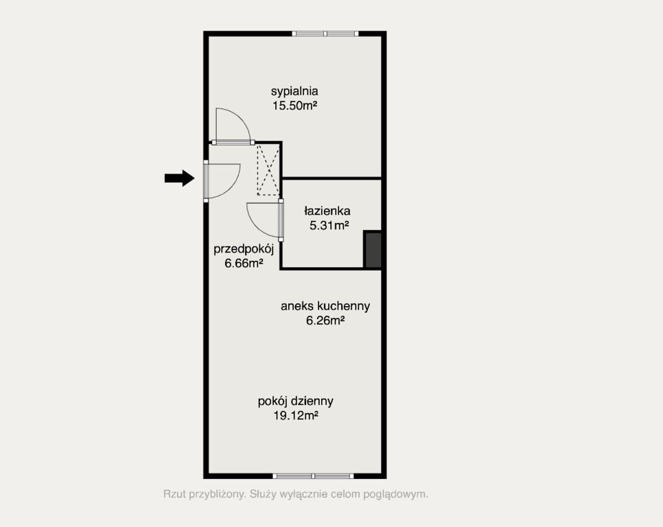 Nieruchomość o powierzchni 52,73 m2 składa się z następujących pomieszczeń:
