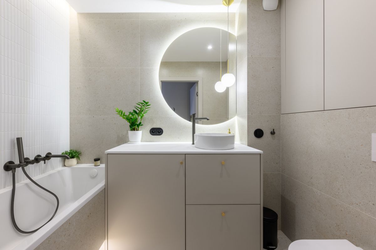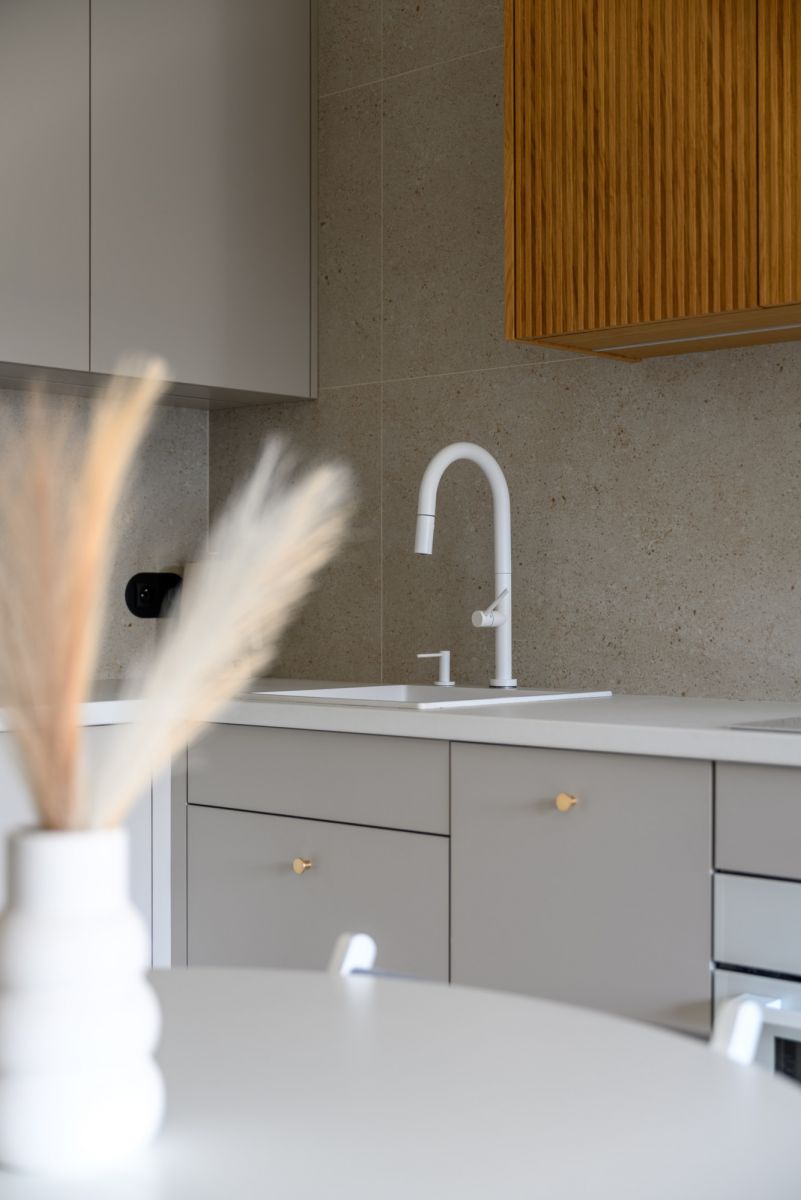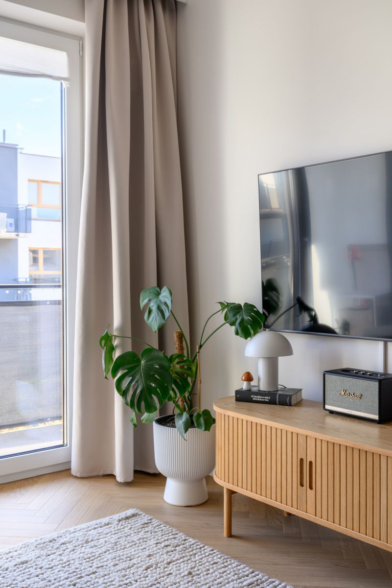 Mieszkanie utrzymane jest w stonowanej, harmonijnej kolorystyce, co nadaje mu elegancji i ponadczasowego stylu. Wschodnia ekspozycja zapewnia naturalne, poranne światło, jednocześnie chroniąc wnętrze przed nadmiernym nagrzewaniem w drugiej części dnia.