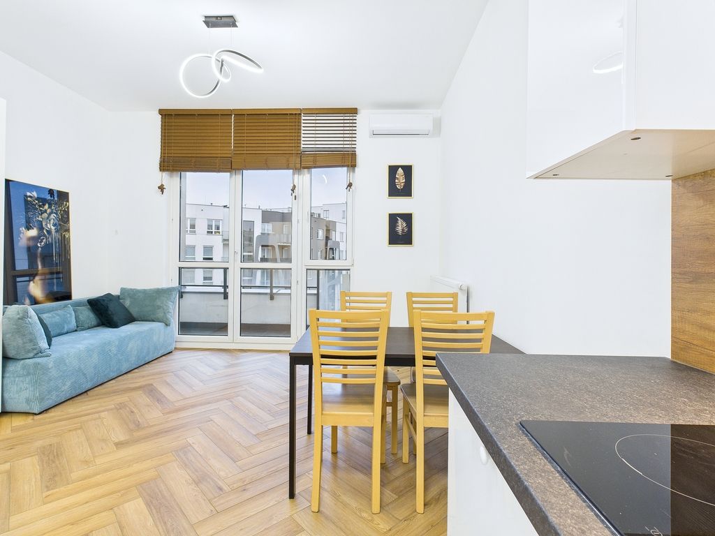 Świadectwo charakterystyki energetycznej - zapotrzebowanie na energię: EU - użytkową (kWh/m2*rok): 72.50; EK - końcową (kWh/m2*rok): 116.40; EP - nieodnawialną energię pierwotną (kWh/m2*rok): 93.20; EC02 - Wielkość emisji CO2 (t C02/m2*rok): 0.04; UOZE - Udział odnawialnych źródeł energii w zapotrzebowaniu na energię końcową [%]: 0.00; A functional and fully furnished studio apartment with an area of 29.33 m² is available for rent on Kłobucka Street. The apartment is located in a well-maintained building with an elevator, in the immediate vicinity of public transportation stops and with quick access to major routes out of Warsaw. The space is bright, comfortable, and move-in ready.