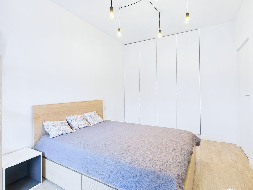 - sypialnia z dużą szafą w zabudowie i łóżkiem małżeńskim oraz wyjściem na balkon,