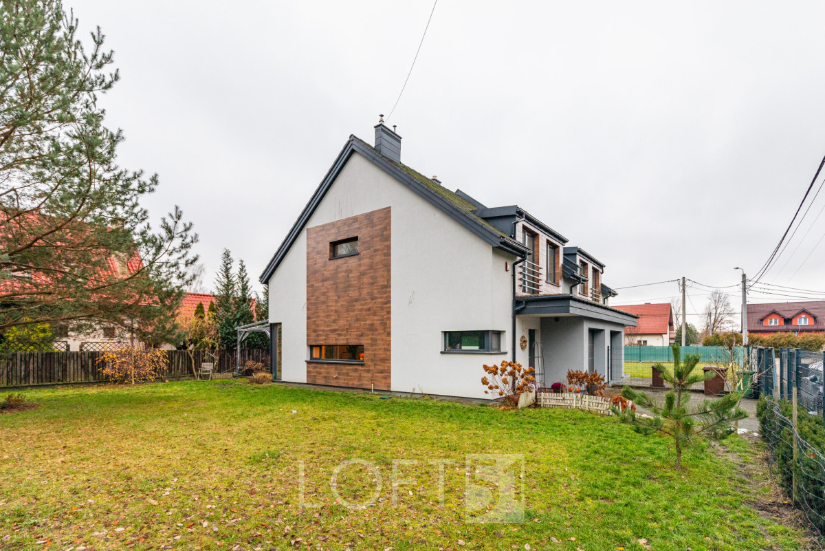 Prowizja 0% | Solec (powiat piaseczyński) | Nowoczesny bliźniak 126,5 m² z dużą działką, garażem i możliwością adaptacji poddasza ok. 46m².