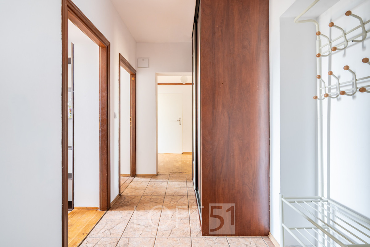 Dwustronny układ mieszkania z ekspozycją okien na wschód i zachód zapewnia naturalne doświetlenie wnętrz w ciągu dnia. Nieruchomość obejmuje cztery pokoje, kuchnię, korytarz oraz łazienkę, co tworzy czytelny i funkcjonalny podział przestrzeni. W pokojach ułożono panele, natomiast w kuchni, łazience i korytarzu zastosowano kafle, które ułatwiają utrzymanie czystości. Okna PCV wspierają izolację termiczną i akustyczną. Do mieszkania przynależy miejsce postojowe na zamkniętym podwórzu z bramą na pilota.