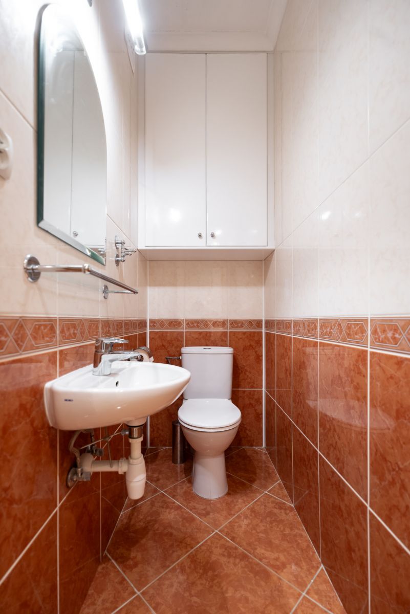 Dużym atutem jest łazienka z wanną, toaletą i miejscem na pralkę. Dodatkowo jest osobna toaleta, co znacząco podnosi komfort przy większej liczbie domowników lub gości.