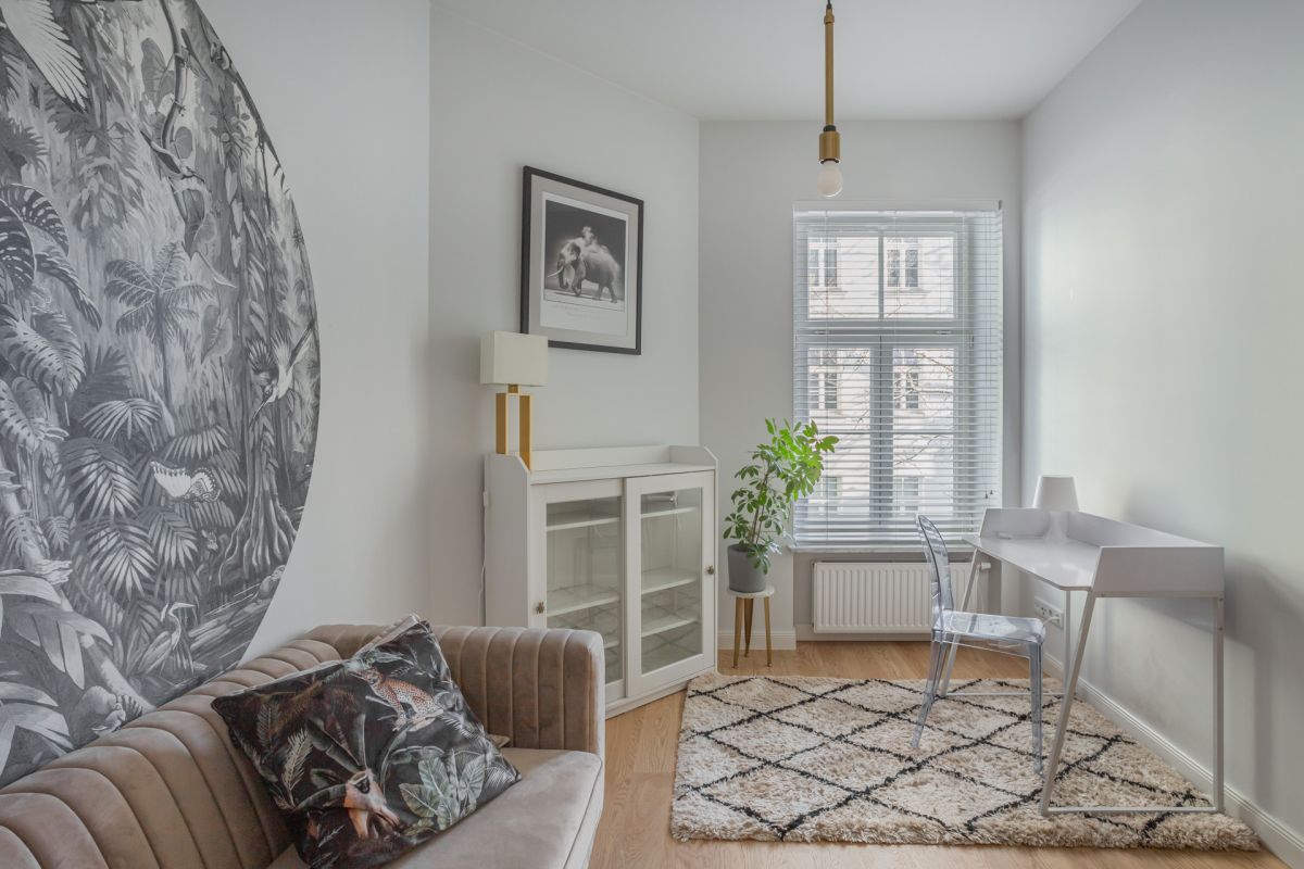 Stylowy apartament o funkcjonalnym układzie, łączący przestrzeń dzienną z wyraźnie wydzieloną strefą prywatną.