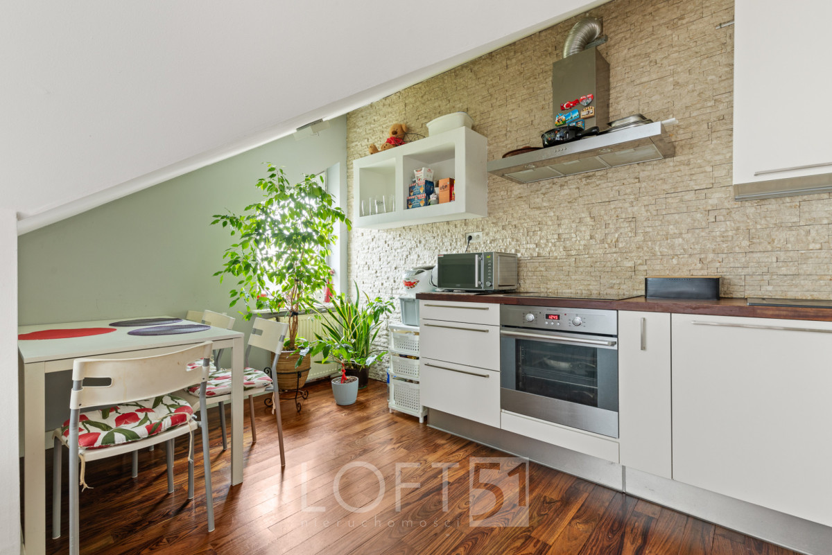 Lokal o powierzchni całkowitej ok. 58 m² (37,6 m² w KW) dzięki funkcjonalnie zabudowanej antresoli oferuje znacznie więcej przestrzeni niż standardowe mieszkania w tej kategorii. Przemyślany układ pozwala na wyraźny podział stref dziennej i prywatnej, co przekłada się na wysoki komfort życia. Mieszkanie znajduje się na 3. piętrze w budynku z 1995 roku, na zamkniętym, zadbanym osiedlu z całodobową ochroną.
