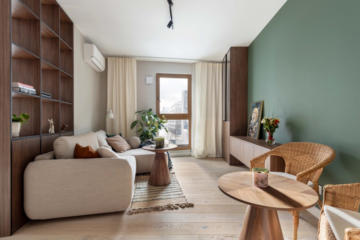 Apartament znajduje się na 3. piętrze nowoczesnego budynku. Jest cichy, gustownie urządzony i w pełni wyposażony — na miejscu m.in. zmywarka, pralka, klimatyzacja oraz liczne szafy zapewniające wygodne przechowywanie.