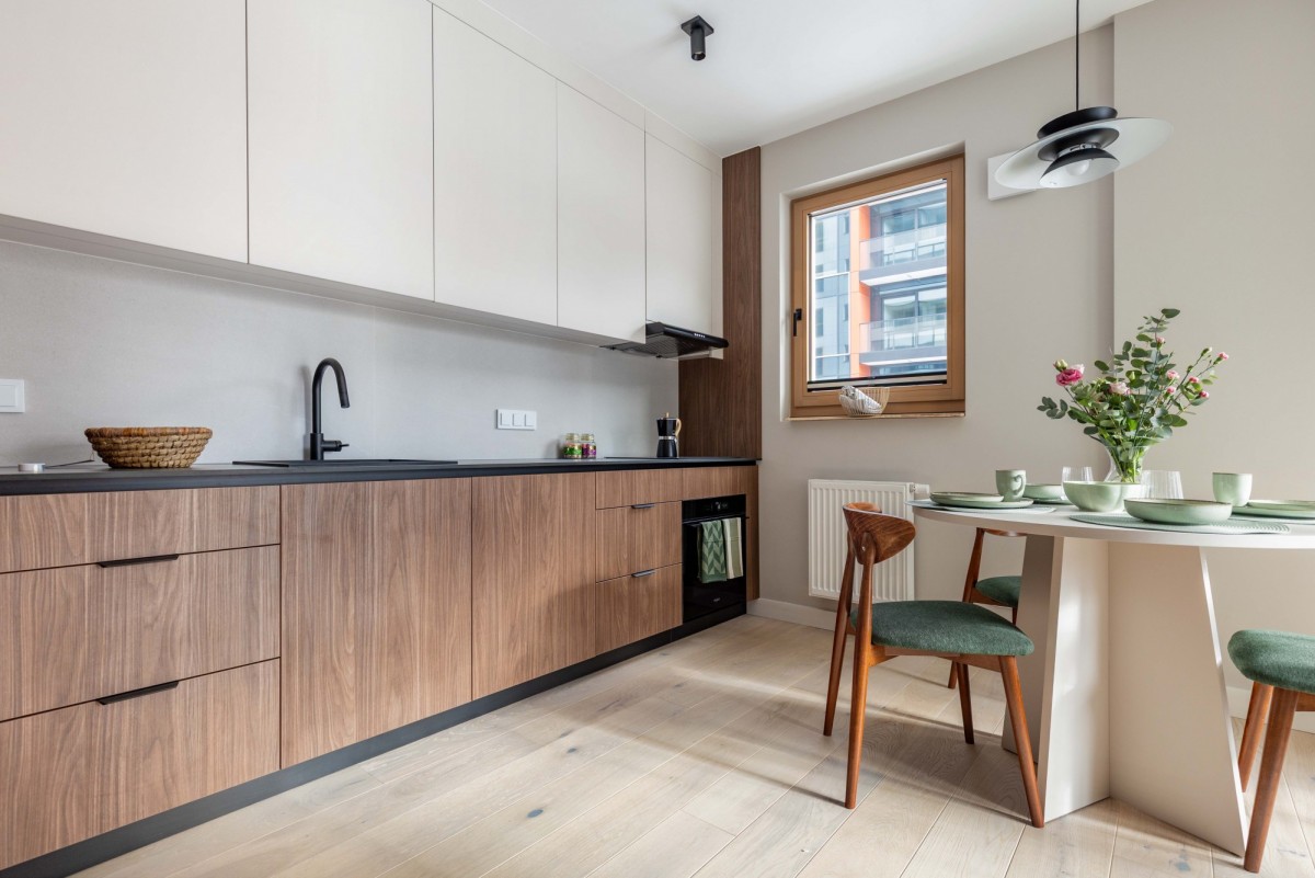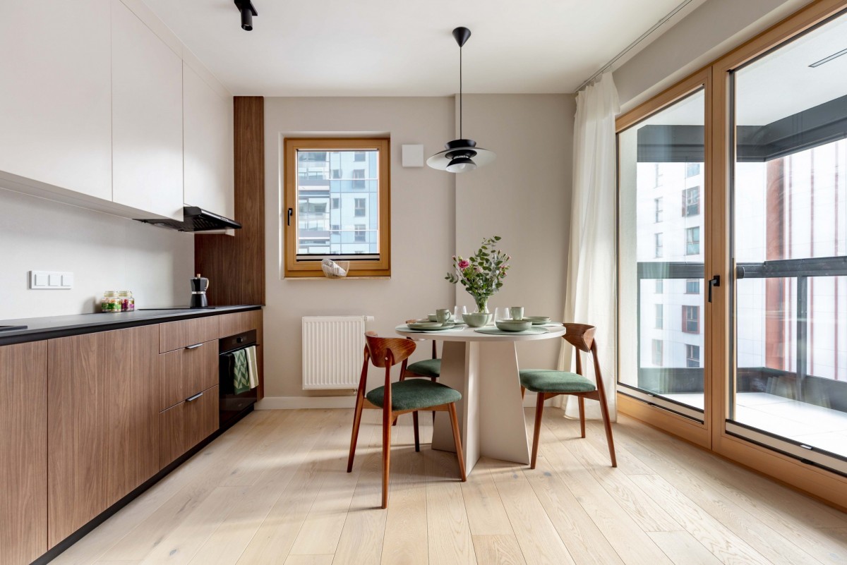- nowoczesna kuchnia z jadalnią i wyjściem na loggię,